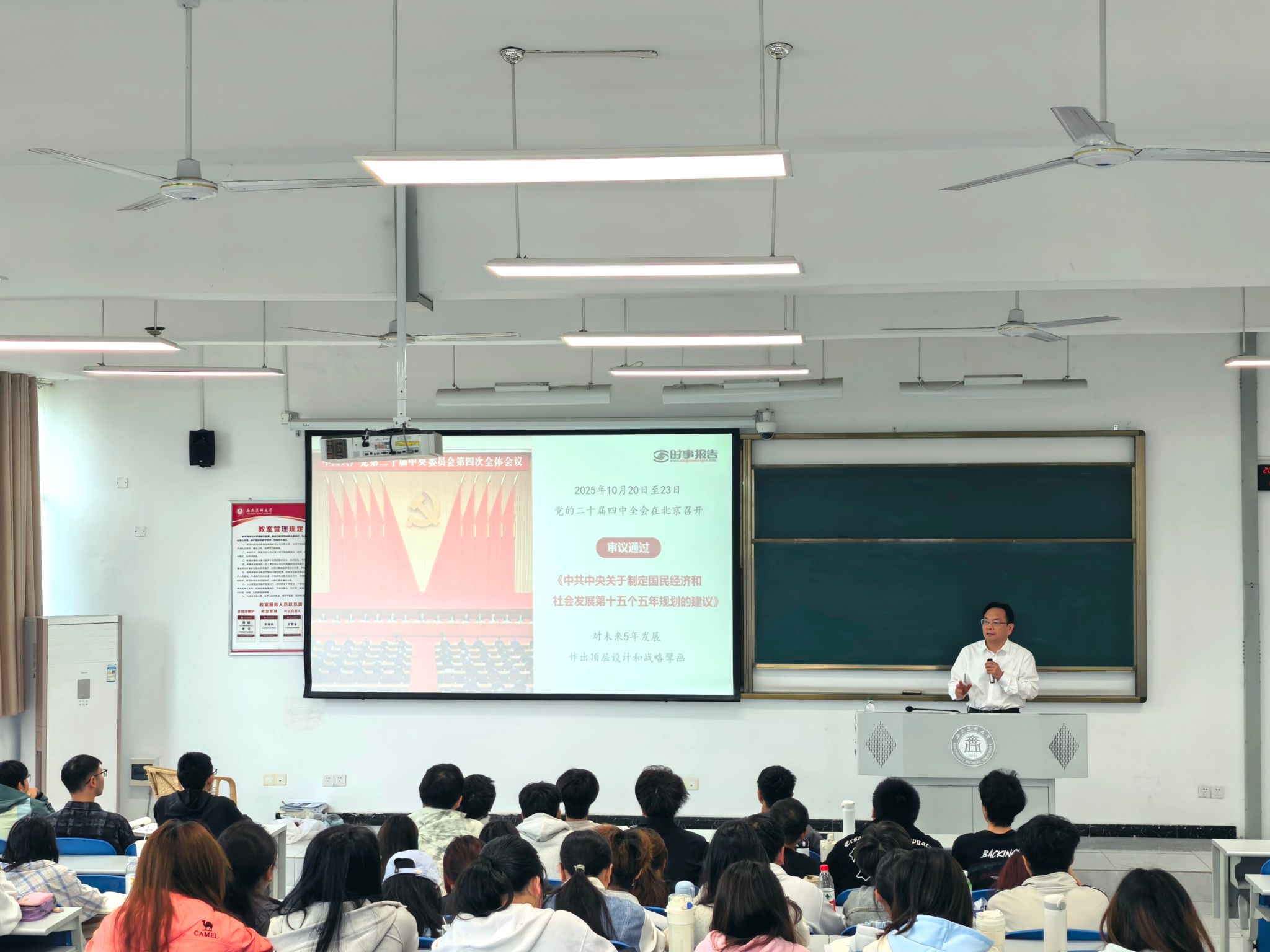 学校党委书记张春祥为学生讲授“形势与政策”课