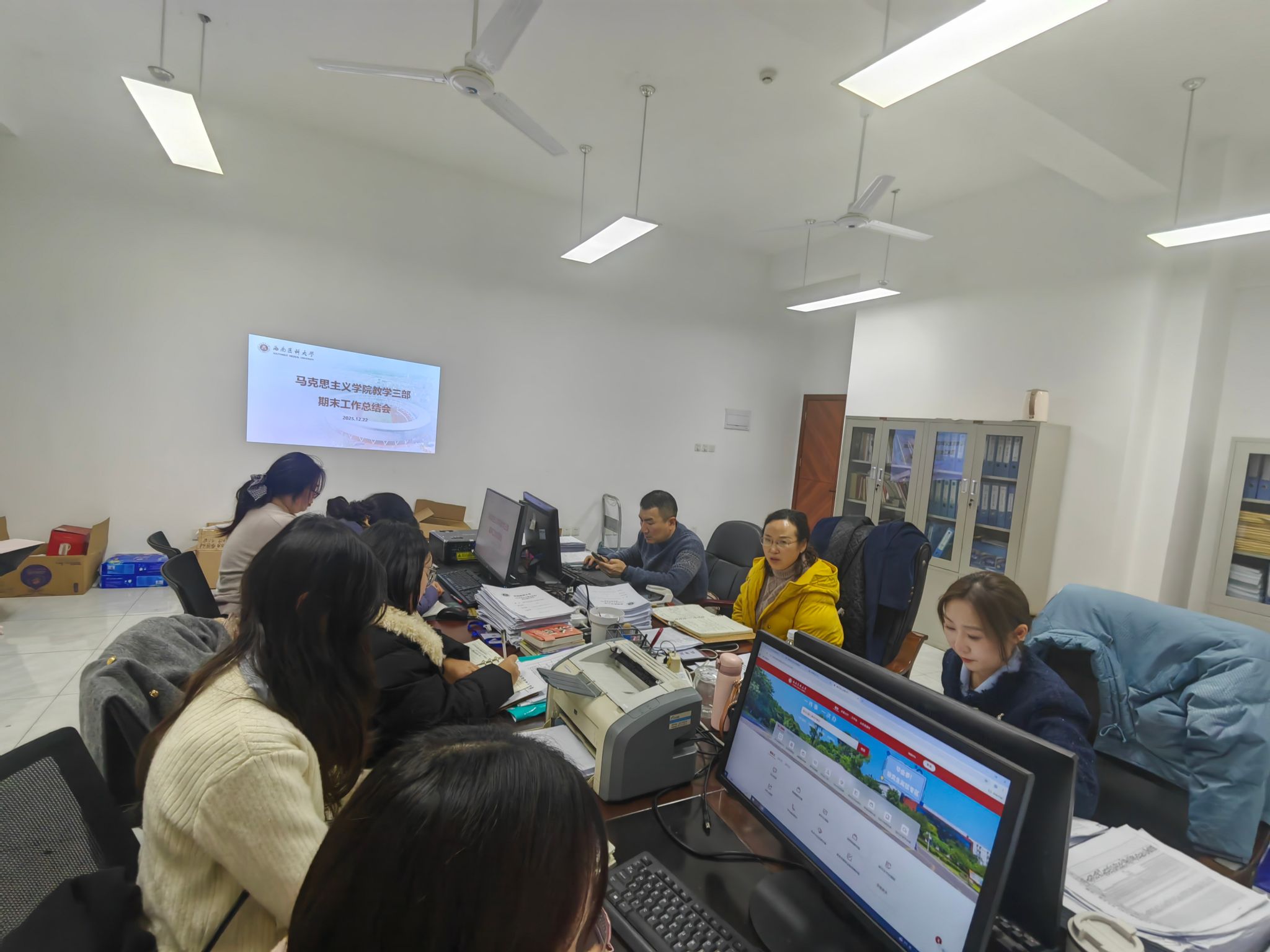 12月22日,马克思主义学院教学三部在文渊楼423会议室组织期末总结工作会。会议由教学部主任王虹主持,教学三部全体教师参加。