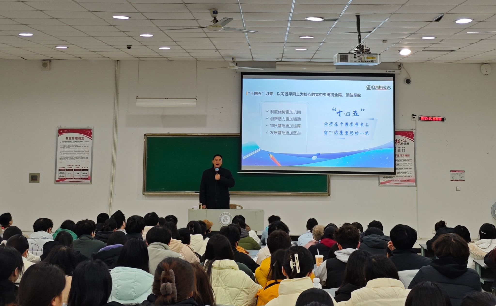 本次思政课主题鲜明、内容充实、讲述生动,既有理论高度,又贴近学生思想实际与专业背景,在学子中引发了热烈反响。同学们纷纷表示,通过聆听授课,对“十四五”时期国家取得的辉煌成就有了更全面深刻的认识,对自身所肩负的时代责任与历史使命有了更清晰的把握,进一步激发了刻苦学习、报效祖国的内生动力。
