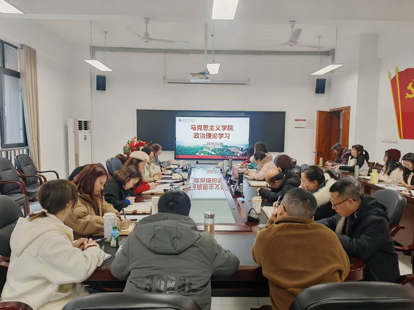 1月6日下午,马克思主义学院在文渊楼432会议室召开政治理论集中学习会。学院党委书记张圆主持会议,全体教职工参会。