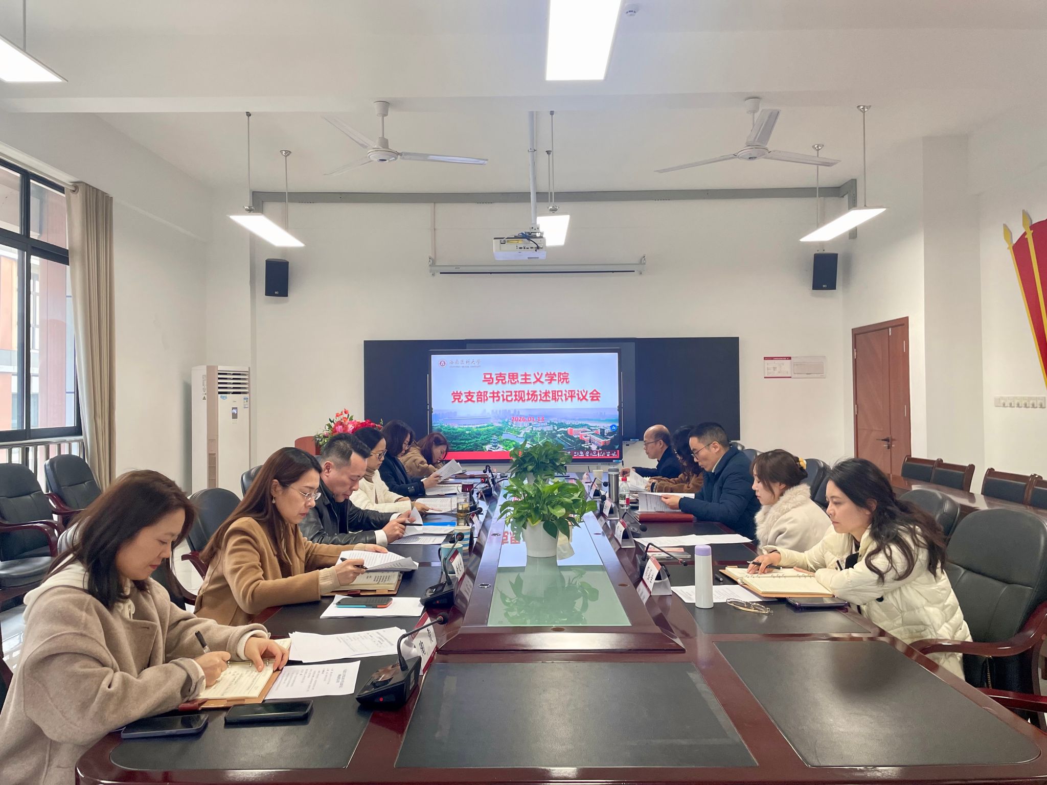 1月13日下午,马克思主义学院党委在文渊楼432会议室召开2025年度党支部书记述职评议会。学校党委委员、口腔医学院党委书记唐柯到会指导。学院全体处科级干部、党委委员、党支部书记、党员干部代表参加会议。会议由马克思主义学院党委书记张圆主持。
