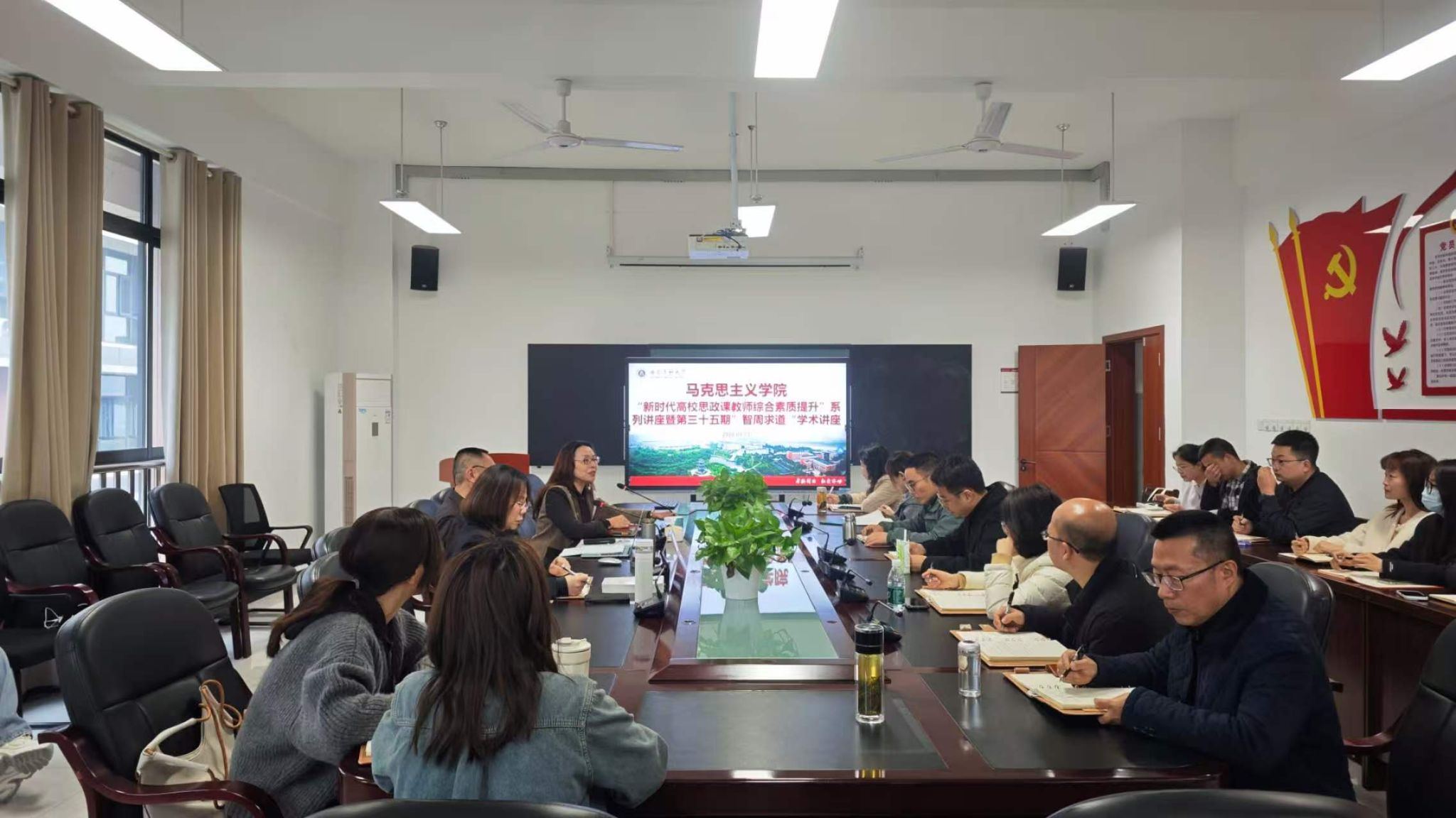 3月21日,马克思主义学院在文渊楼432室举办“新时代高校思政课教师综合素养提升”系列讲座暨第三十五期 “智周求道”学术讲座。本次讲座特邀四川大学马克思主义学院院长蒋永穆教授担任主讲嘉宾。讲座由学院院长黄晓利主持,学院全体教师及泸州医疗器械职业学院马克思主义学院教师代表共同参加。